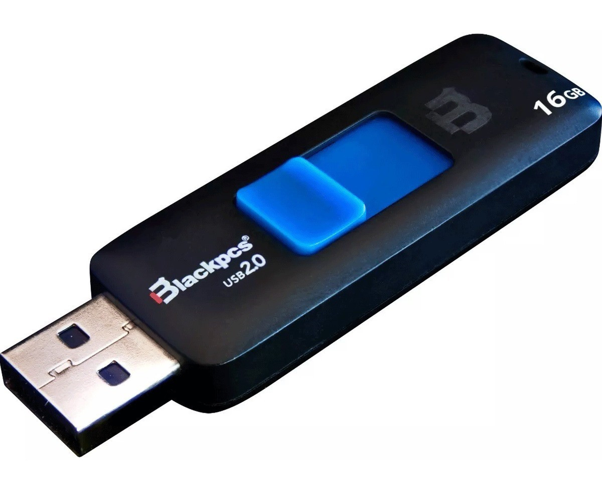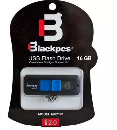 Memoria Usb Blackpcs Mu2101b-16, 16 Gb, 2.0, Factor De Forma Deslizar, Color Negro, Azul
